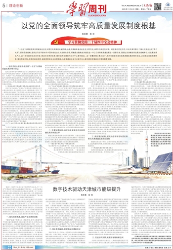 中共天津市委十二届七次全会审议通过《中共天津市委关于制定天津市国民经济和社会发展第十五个五年规划的建议》,明确提出“发展新质生产力”“加快建设数字天津”。在数字技术重构全球发展格局、驱动生产生活方式深度变革的时代背景下,天津立足自身发展定位,主动把握数字经济发展机遇,充分发挥数字技术对天津城市能级的提质增效作用,为确保建成社会主义现代化大都市,打造中国式现代化建设先行区、示范区奠定坚实物质技术基础。