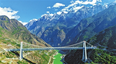 图为虎跳峡金沙江铁路大桥。