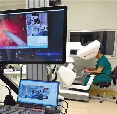 图为姚欣教授为郑州患者进行机器人远程交互手术。