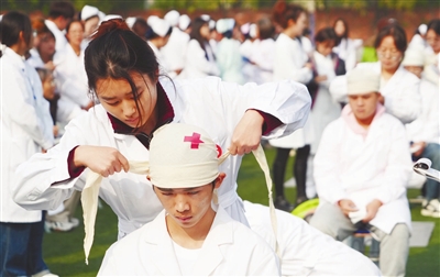 日前,天津医学高等专科学校开展技能节大赛,旨在培养更多高素质卫生健康人才。 记者 刘欣 摄