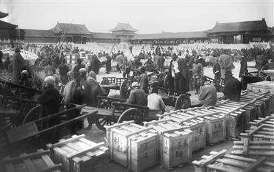五批文物从北平运至上海时,共有19492箱72包8件。除了故宫博物院的文物外,还有北平古物陈列所5414箱、颐和园640箱8包8件、国子监石鼓11箱。