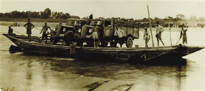 在南路文物疏散的过程中,渡河是常见的交通方式。1944年年底,日军占领黔南重镇独山,时任故宫博物院古物馆科长的庄严被迫与家人带着文物从安顺转运到四川。庄严的四儿子庄灵在《故宫文物南迁时代忆往——从〈华严洞图卷〉和〈庄严日记〉谈起》一书中,回忆了他们乘坐的军用卡车是如何渡过乌江的。乌江是长江从贵州到四川段一条较大的支流,为了渡桥,车队请人用木杆搭建了一座狭窄的长桥。这座桥两边完全没有栏杆,宽度比车两边轮胎没宽几尺。除了司机外,差不多所有的人员都要下车,行走在车子后面,以减轻车子的重量。时年6岁的庄灵因为年纪小,和母亲被留在副驾驶的位子上。车辆启动,在车外多人的协助和大声呼喊指挥下,司机谨慎地开上桥,在桥上开得非常缓慢。桥身因受到重压产生的吱嘎声,庄灵听后感到非常害怕。当他的眼睛往外看时,感觉自己好像“悬浮”在江面上。就这样不知过了多久,车队才渡过乌江。庄灵回忆说,整个渡江的过程终生难忘。