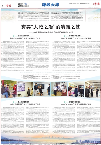 城市是现代化建设的重要载体、人民幸福生活的重要空间,城市治理成效关系人民群众的获得感、幸福感、安全感。习近平总书记在视察天津时指出,提高城市治理现代化水平是建设现代化大都市的重大任务。党的二十届四中全会通过的“十五五”规划《建议》强调,推进超大特大城市治理现代化,坚持城市内涵式发展,大力实施城市更新,建设创新、宜居、美丽、韧性、文明、智慧的现代化人民城市。