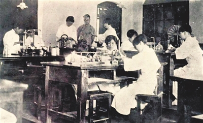 北洋女师范学堂更名为河北省立师范学院后,学生在做物理实验。