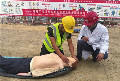 近日,中铁十二局明阳现代能源高端装备科技产业项目(一期)现场组织开展“高处坠落”应急演练。演练模拟了高处坠落事故场景,各应急小组响应迅速、配合有序,全面检验了应急预案的可行性和团队的应急处置能力。演练结束后,项目部还开展了专项救援培训,进一步强化了员工的安全意识和实操技能。 文 龚青