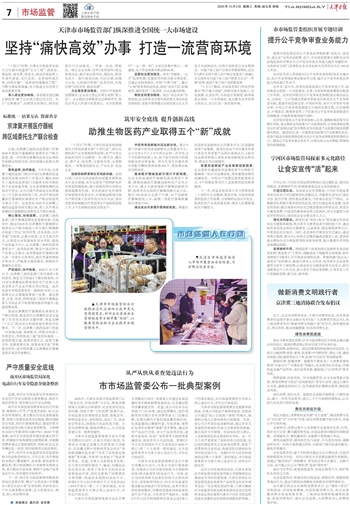 “十四五”时期,天津市市场监管系统大力实施市场监管“五大工程”,讲政治、强监管、促发展、保安全,推动市场监管工作善作善成、见行见效。在营商环境方面,持续实施“一流营商环境建设工程”,不断完善监管措施,有力促进全市经营主体高质量发展。