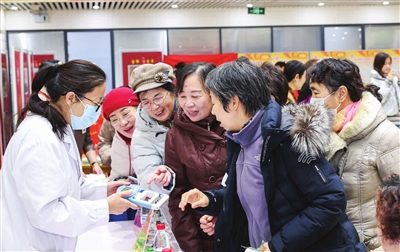 图为营养科医生为居民提供健康指导。