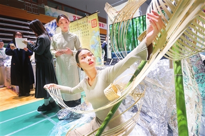 四川师范大学参赛项目《编竹知物》。 记者 姜宝成 摄