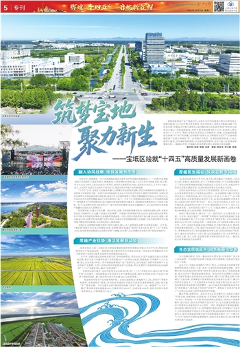 智能装备制造产业产值破百亿,京津中关村科技城累计吸引注册经营主体超2000家;10万还迁群众喜迁新居,农村居民收入连续4年跑赢GDP,“四好农村路”串联起乡村振兴新图景;境内潮白新河全段获评国家“绿水青山就是金山银山”实践创新基地,2024年接待游客超455万人次、旅游收入增长22.3%……“十四五”期间,宝坻区历史性迈入高铁时代,京唐、京滨城际构建起京津冀“半小时”经济圈,成功摘取“国家生态文明建设示范区”“全国双拥模范城”“全国文明城区”等一系列国字号荣誉。区域协同纵深推进、产业升级势头强劲、民生福祉持续增进、生态底色愈发鲜明,京东大地上处处涌动着蓬勃生机,一幅城乡共荣、产城融合的高质量发展生动画卷正徐徐铺展。
