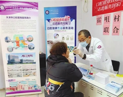 近日,天津市口腔医院“口腔健康直通车”志愿服务团队走进北辰区天穆镇霍咀村,开展口腔健康活动。医护人员为村民免费进行了口腔健康检查,为他们提供个性化口腔疾病防治建议,帮助他们提升口腔健康意识。