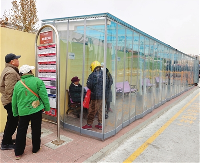 入冬以来,天津公交第二客运公司渌水道中心车队对原有候车驿站进行了暖心升级,通过加装防风帘等举措避免了乘客在寒风中等候。