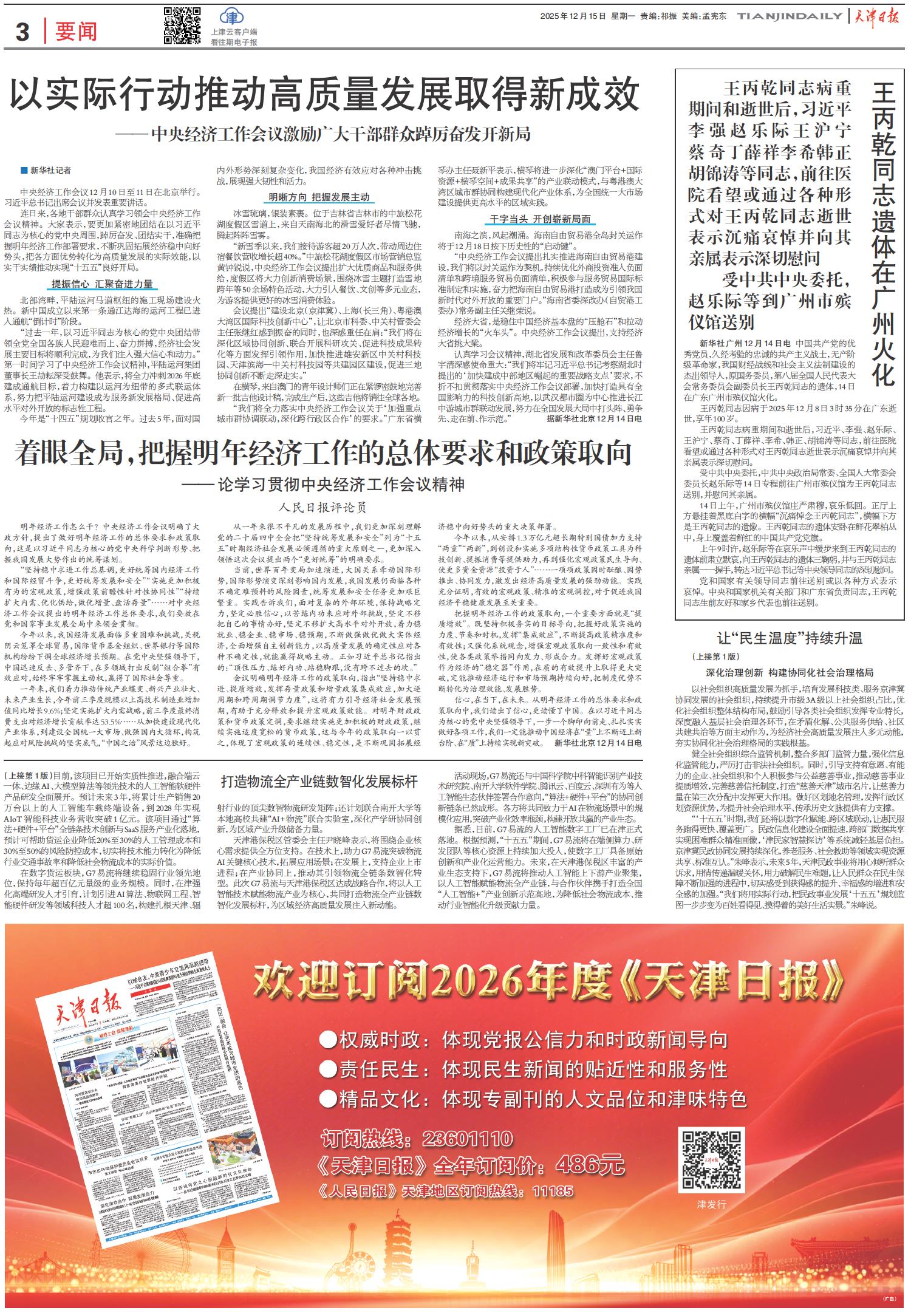 着眼全局,把握明年经济工作的总体要求和政策取向