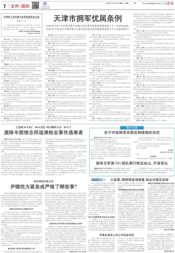 《天津市拥军优属条例》已由天津市第十八届人民代表大会常务委员会第二十二次会议于2025年11月28日修订通过,现予公布,自2026年1月1日起施行。