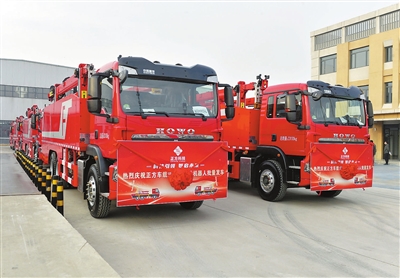 图为首批车载式智能修井机器人发往辽河油田。