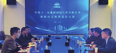 近日,天津港保税区管委会人社局一行到中铁十二局国际公司开展“送法入企”交流活动,就最新劳动保障法规与实务经验,为公司答疑解惑、精准支招。 文图 冯湘婷 游明昊