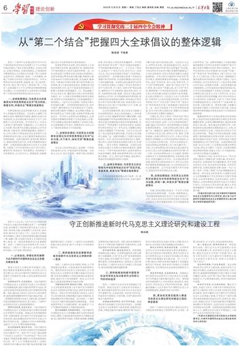 党的二十届四中全会通过的《中共中央关于制定国民经济和社会发展第十五个五年规划的建议》提出:“落实全球发展倡议、全球安全倡议、全球文明倡议、全球治理倡议,引领国际秩序朝着更加公正合理的方向发展。”四大全球倡议彼此呼应、相得益彰,构成一个有机整体,体现了中国作为负责任大国的世界担当。中华文明具有突出的连续性、创新性、统一性、包容性、和平性,通过“两个结合”,特别是“第二个结合”,这些深植于五千年文明积淀的精神特质被充分激活,为中国深度参与全球发展与治理提供了丰厚的思想资源和坚定的文化自信。