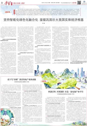 习近平总书记指出,着力加快建设实体经济、科技创新、现代金融、人力资源协同发展的产业体系,不断增强我国经济创新力和竞争力。党的二十届四中全会通过的“十五五”规划建议提出,现代化产业体系是中国式现代化的物质技术基础。贯彻落实中央经济工作会议精神,坚定信心、应对挑战,全力以赴做好明年经济工作,不断巩固拓展经济稳中向好势头,一个极为重要的方面就是用好中国特色社会主义制度优势、超大规模市场优势、完整产业体系优势、丰富人才资源优势。用好我国完整产业体系优势,坚持以科技创新引领产业升级,统筹推进传统产业改造提升、新兴产业培育壮大、未来产业超前布局,构建以先进制造业为骨干的现代化产业体系,定能为我国稳住经济大盘、高质量发展注入源源不断的新动能。建设现代化产业体系,实体经济是基础,科技创新是动力,现代金融是保障,人力资源是支撑。本版从本期起,分别从实体经济、科技创新、现代金融、人力资源四个方面,聚焦现代化产业体系建设的理论和实践。