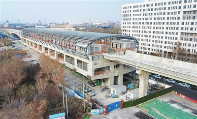 日前,天津市轨道交通Z2线一期工程全线9座高架车站全部实现封顶。Z2线一期工程西起天津滨海机场,东至北塘,与地铁2号线、B1线、Z4线换乘,是一条连接津滨双城的重要交通干线。 记者 周伟 摄