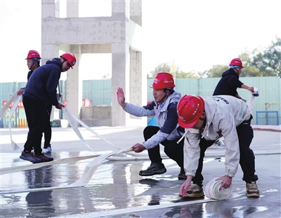 近日,中铁十二局东莞厚街保障房项目举办消防技能比武竞赛,来自建设单位9支队伍参赛。指令下达后,队员迅速携水带冲向模拟火场,精准对接、喷水灭火,随后沿预定路线扑救并彻底排除隐患。最后整理装备、鸣哨示意,完成比赛。活动有效提升了项目消防应急处置能力,为安全生产提供了坚实保障。 文 王伟
