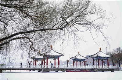 图为12月23日,市民在长春市南湖公园内观赏雪景。