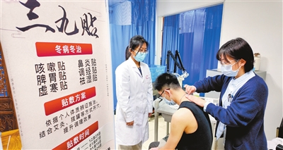 图为南开区中医医院,大夫在给市民贴“三九贴”。