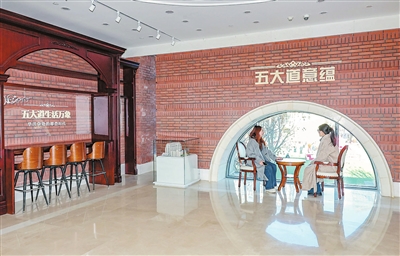 互动体验成为新游客服务中心亮点。在二层主题文化展区,“时光听筒”互动区引导游客走进复古电话亭,投入特制硬币便能亲耳聆听由部分珍贵历史录音剪辑而成、时长约3分钟的尘封往事,如同开启一个时空胶囊。“工商文化”展区内,一台留声机暗藏玄机,拉开抽屉,落下唱针,经典旋律便从黄铜喇叭中流淌而出。此外,“漫游骑行”互动装置与遍布各处的精细3D建筑模型共同构建起一个能让游客与历史街区深度“对话”的沉浸空间,连廊处的折叠双画面艺术装置将历史风貌与当代繁华完美融合。