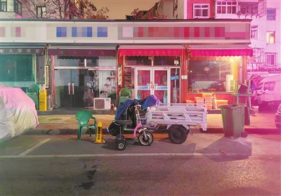 12月中旬,记者来到南开区通园路探访。这条路不宽,但商业发达,道路两侧有不少餐馆。路东侧施划有40多个公共泊位,其中半数被废旧三轮车、电动自行车和堆叠的水果箱等占据。