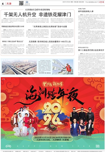 据介绍,午夜特别场以千架无人机编队表演与高达1600℃的非遗打铁花为核心亮点。无人机将在零点倒计时环节变幻出绚丽星河;炽热的铁水则将泼向长空,绽放下漫天华彩,呈现“火树银花不夜天”的壮观场面。活动还融合电音派对、篝火晚会等环节,打造沉浸式迎新狂欢。现场设有2.5公里主题游览环线。游客既可拍摄“津彩华章”旋转灯组、参与“财神送福”互动,也可沿路品尝地道津味小吃、选购国潮文创,畅享逛、吃、拍、玩一站式体验。