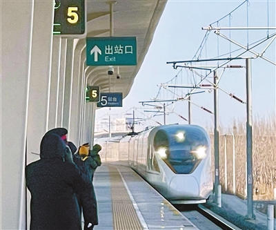 北辰站正式开通往返北京通州站的高铁列车,让天津至北京的出行更加便捷。 记者 张磊 摄