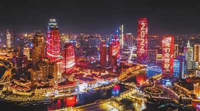 连日来,海河沿线等区域开启迎新年主题灯光调试。日出津城、城市地标等精美光影画面轮番上演,新年祝福字样点亮海河两岸。 记者 吴迪 摄