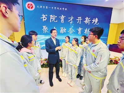 近日,天津一中河北学校正式启动“书院育人模式”,立足学生特长、对接高校资源,以大中贯通培养提升学生核心素养,助力个性化成长与生涯规划。其书院“弘毅讲堂”首讲邀请南开大学刘晓光教授分享前沿知识。