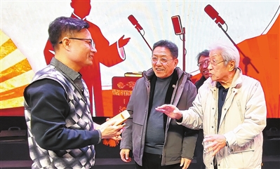 日前,市曲艺团在中华曲苑举办相声公益讲座。常氏相声代表人物常宝庆(右一)、常宝丰(中)登台主讲。