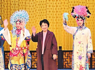 著名京剧表演艺术家、梅(兰芳)派传人李经文(中)与两位弟子。 摄影 通讯员 吉宁