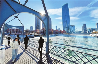 昨日天气晴好,游人漫步解放桥,静享城市时光。