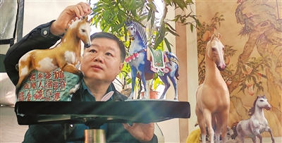 天津泥人张彩塑工作室的国家级工艺美术大师陈毅谦创作马年彩塑作品。