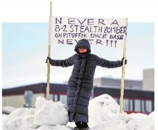 去年3月,在丹麦自治领地格陵兰岛首府努克,一名女子举着抗议标语。 新华社资料图
