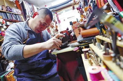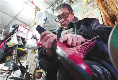 这些手艺人里,既有年轻时学徒、深耕行业数十年的“老把式”,也有半路转行、深耕技艺的“跨界达人”,他们凭借一双巧手,将修鞋、修表、织补衣物、家具修复、瓷器翻新等百余项修补服务带到居民身边。一双磨破的皮鞋,经师傅拉线、补胶、抛光,便能重焕光彩;一块停摆的老手表,在镊子与放大镜的配合下,齿轮重新转动起岁月的印记;一件不慎钩破的羊绒衫,通过织补师傅的“以线补线”,纹路无缝衔接。这些修补服务虽琐细,却为居民的日常生活提供了实实在在的便利。