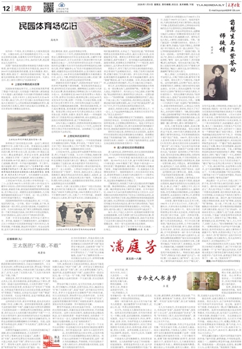 了解情况后,我找到了天津人民出版社的责任编辑韩玉霞。韩老师特别热心,很快就寄了书,满足了鲍尔的心愿。鲍尔特意发来电子邮件表示感谢。在书中他回忆,1930年5月24日值英国维多利亚女王的生日,12岁的鲍尔在民园体育场参加了纪念女王的校际运动会,还与老师、同学等拍了合影;他记得那时体育场的跑道是煤渣儿铺的,也记得英国人伍海德常常自豪地说:“在世界任何地方举办的庆祝活动,都不如天津办得热闹。”他还提到当年民园体育场的管理者是俄国人,叫尼科庭。可谁知,或许是心愿已了,鲍尔收到书后没多久就去世了。