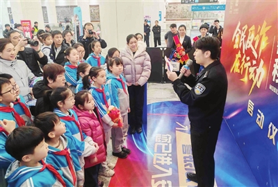 1月9日,公安公交分局联合天津银行在地铁3号线津湾广场站举办“移动反诈宣传站”启动仪式。 记者 曹彤 摄