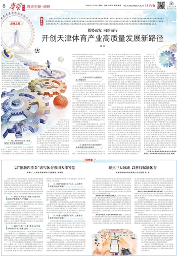 五是创造新模式:促进体育企业提质增效。持续推动天津老字号体育品牌振兴,鼓励支持梅花、春合、729、利生等老字号体育品牌转型升级。深化工业互联网、复杂系统仿真、数字孪生、智能制造等新技术的实践应用,打造“智能健身器材+运动健康服务”“体育器材制造+数字管理”等定制化“产品+服务”模式,提升市场竞争力。大力推动民营体育企业发展,构建涵盖“专精特新”“瞪羚”“隐形冠军”企业的梯度培育体系,引导优质企业锚定“单项冠军”发展目标。充分发挥体育产业发展专项资金作用,有计划地布局建设体育产业园区、体育企业孵化器。强化金融服务模式创新,开发更多适应体育企业全生命周期发展需要的金融产品与服务。此外,要积极引导企业加大投入,聚焦体育首发经济、赛事经济、冰雪经济、体育银发经济和体育低空经济领域,不断拓展体育产业发展新空间,布局新兴赛道、开拓未来领域,形成与社会主义现代化大都市相适应的体育产业高质量发展新格局,助推早日建成天津风格、中国特色、独具魅力的国际化体育强市、“运动之都”“排球之城”和“赛事名城”。