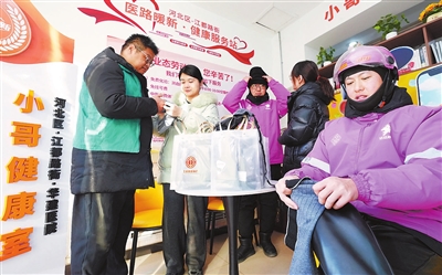 日前,河北区总工会携手江都路街道开展送温暖活动,聚焦外卖配送员、环卫工人等户外作业群体,为他们送上护膝、手套等防寒用品,并开展义诊和健康咨询服务,传递关怀与温暖。 记者 吴迪 摄