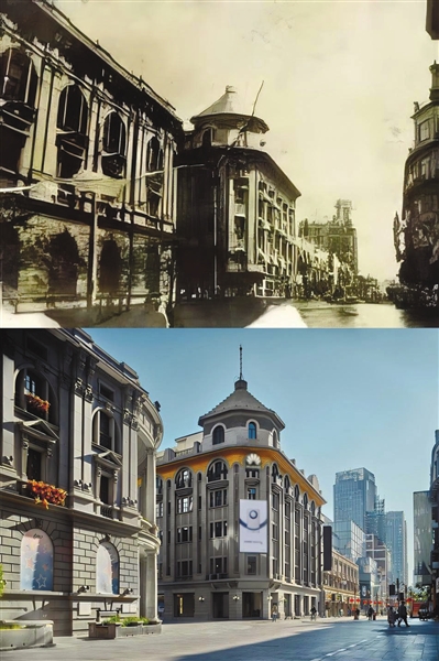 修复前后的交通旅馆对比图