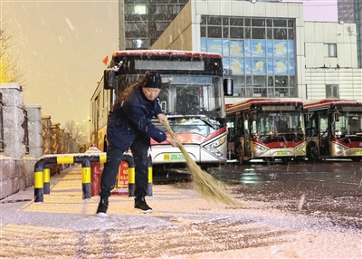 降雪来临前,市公交集团根据气象预报及行业主管部门部署,要求各运营公司及基层车队严格落实特殊天气应急预案,提前对20余处候车驿站进行环境清整,完成御寒设施排查检修,确保便民服务设施完好可用。17日午后,随着降雪逐渐增强,该集团依托三级调度系统,密切监测重点路段、商圈、居民区等客流变化,灵活调整发车频次。同时,各车队要求及时开启车内暖风,在首发站引导乘客提前上车避风,并重点做好特需乘客帮扶,及时清扫车内水渍,防止结冰。