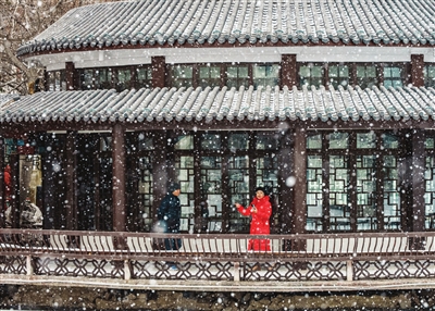 ③ 河西区人民公园秒变雪景“打卡”地。 记者 赵建伟 摄