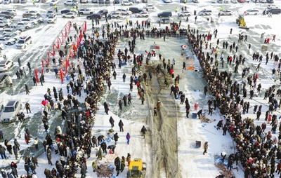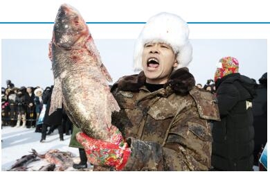 1月17日,2026兴凯湖冬捕节在中俄界湖兴凯湖畔启幕。人们在现场共同见证千米大网破冰而出,万鱼腾跃竞逐的震撼场景,感受传承千年的肃慎渔猎文化,体验北国边境冰雪文化独特魅力。