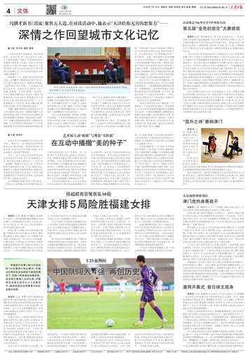 买煎饼果子时,摊主一句“闭眼吃,听响儿”,让赵普对天津人的幽默表达有了新认识,也好奇天津这座城市对冯骥才的影响。“天津有两个完全不同的城区,两种完全不同的景象、形象与气质,两种不同的文化。你在城市的这一半,常常被它的另一半所吸引。这是一种其他城市没有的魅力,给你无穷的想象力。”冯骥才表示,生命与创作深深植根于津沽大地,“作家的创作离不开家乡的文化滋养,我在天津发现了太多奇人异事。这些鲜活的人物和故事不断涌入我的脑海,甚至不需要刻意寻找,就会自动蹦出来。这些奇人异事不是我写出来的,是他们从我的笔管里流淌出来的。”