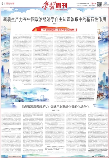 党的二十届四中全会对基本实现社会主义现代化的关键时期作出系统谋划和战略部署,强调以推动高质量发展为主题,要求在发展新质生产力上取得重大突破,不断催生新质生产力。新质生产力的提出,既是推进中国式现代化的重大实践创新,也是构建中国政治经济学自主知识体系的重大理论创新,不仅要对新质生产力在中国式现代化新征程上的生产力基石作用作出准确定位,而且要对新质生产力在中国政治经济学自主知识体系中的理论基石作用作出明确定位。