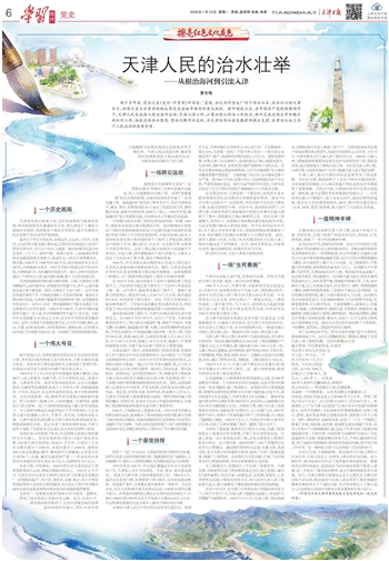 两千多年前,司马迁在《史记·河渠书》中写道:“甚哉,水之为利害也!”对于因水而生、依水而兴的天津而言,洪涝灾害与水资源短缺也曾是这座城市面临的重大挑战。新中国成立后,在中国共产党的坚强领导下,天津人民先后投入根治海河运动、引滦入津工程,以愚公移山的决心和毅力,胜利完成这两大举世瞩目的水利工程,彻底消除洪水隐患、有效化解用水危机,为天津经济社会发展提供强大支撑,在津沽大地上写下人民治水的英雄史诗。