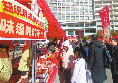 昨天,完成我市“头雁”项目的50余个“头雁”企业携带200多种名特优产品来到天津农学院,参加首届“头雁”年货节展销活动,以“直接面对面、没有中间商”的方式展示科技成果,提供源头商品。天津农学院同时面向市民敞开大门,吸引众多市民到现场选购农产品。据了解,天津市乡村产业振兴带头人培育“头雁”项目旨在培育乡村振兴人才,形成“雁阵”效应,带动周边农民增收,为都市型农业现代化和乡村振兴提供坚实人才支撑。 记者 钱进 摄