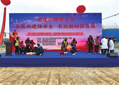 1月20日,驻津央企中铁十八局五公司德阳天府旌城工程项目部党支部,联合德阳市第二人民医院急诊科党支部,在德阳智能制造产教融合项目部成功举办“党建引领聚合力 企医共建保安全 长效联动促发展”主题党日活动。通过理论讲解、实操培训及应急演练,提升一线工人工地事故的急救技能,并建立长效联动机制。 通讯员 张玲玲